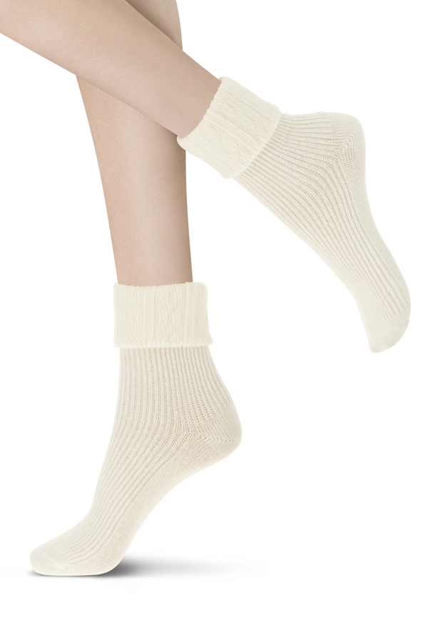Zijdezacht, wol-cashmere sokje met een kabel-patroon en omslagboord.