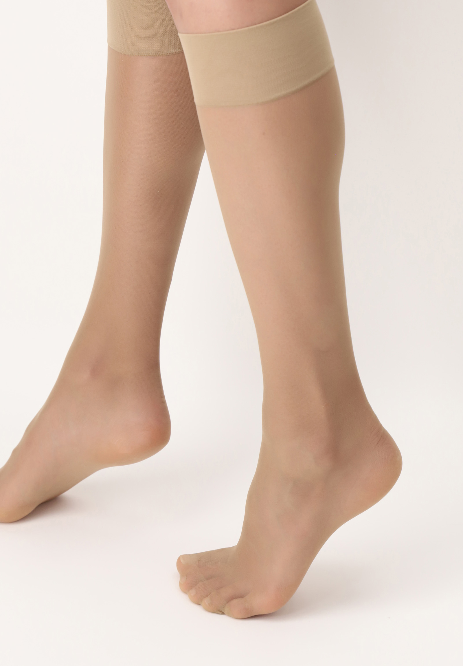 15 denier transparante kniekous met een lichte, subtiele satijnglans en een brede comfort-top. Door deze comfort-top knelt de kniekous niet en blijft deze perfect op haar plaats.